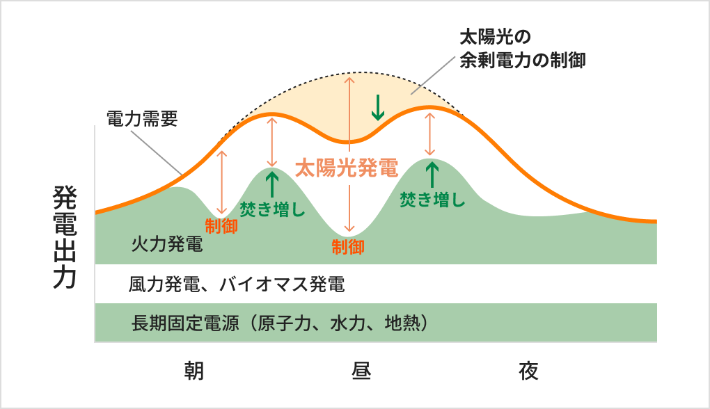 再エネは季節や天候によって発電量が変動します。しかし、電力は常に発電量(供給)と消費量(需要)を同じにする=同時同量を守る必要があります。